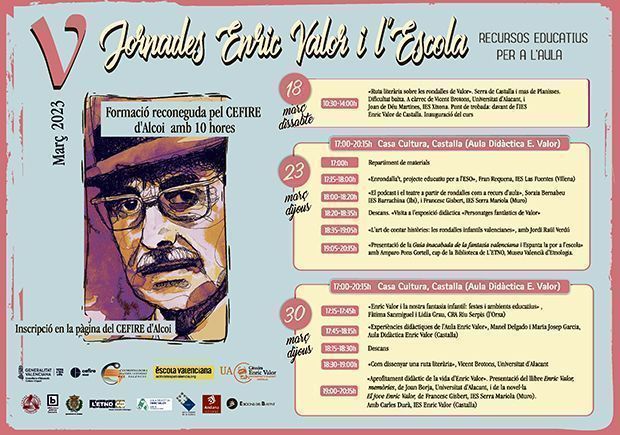 Una setmana després, començarà la cinquena edició de les Jornades Enric Valor i l’Escola, que es duran a terme durant els dies 18, 23 i 30 de març. El dia 18 els participants podran fer una ruta literària sobre les rondalles de Valor, que anirà per la Serra de Castalla i el mas de Planisses. Vicent Brotons, i Joan de Déu Martines, seran els encarregats de dirigir aquesta activitat.