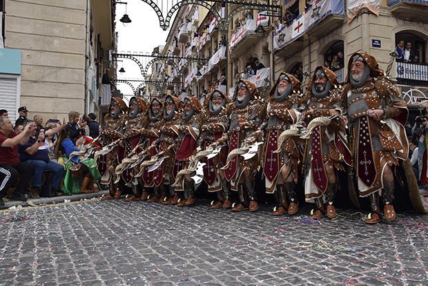 A continuació han estat desfilant la resta de filaes cristianes amb normalitat fins que ha arribat l’equador d’aquest matí, amb la seua esquadra especial, de la mà de la Filà Gusmans. César Vilaplana ha sigut el creador d’aquesta esquadra en la qual s’han pogut veure a uns monjos guerrers amb els colors marrons i grisos com a protagonistes.