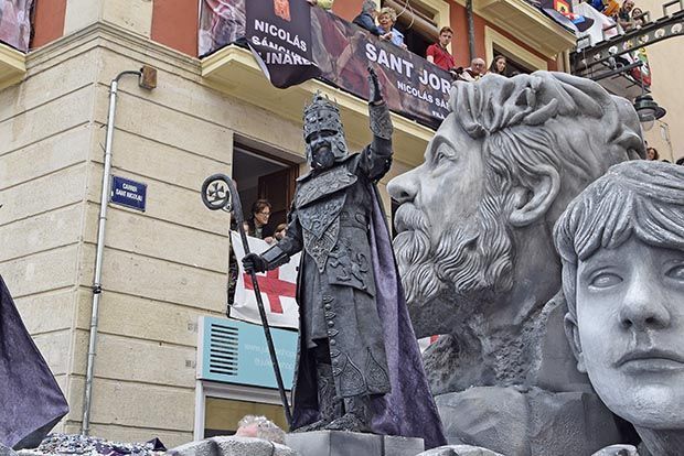 El següent moment especial d’aquesta entrada ha sigut l’aparició del Sant Jordiet, Nicolás Sánchez, festeret de la Filà Andalusos. El representant del patró d’Alcoi ha estat acompanyat en aquesta entrada pels seus, encara que el seu protagonisme arribarà durant el Dia de Sant Jordi.