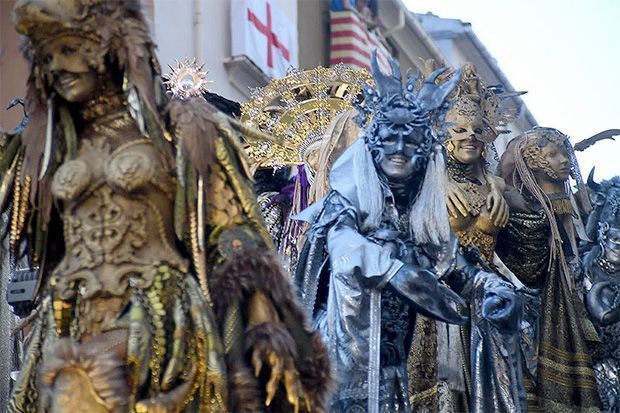 Després d’aquest primer plat fort de la vesprada, les filaes han anat mostrant les seues esquadres de blancs i roponaes, fins a arribar a l’equador amb l’esquadra d’en mig, que enguany ha recaigut en la Filà Judios. Aquesta formació ha presentat un disseny de Camilo Pérez Monllor, en blanca i negres, africans, com és habitual a la filà Judios.