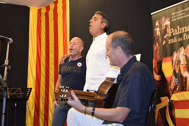 Finalitzats els primers discursos, ha sigut el torn de donar el primer Palmell de la nit, que ha estat a títol pòstum. Remigio Balaguer ha dedicat una detallada glossa al sindicalista alcoià, Pep Linares, i ha parlat de tot el treball que va fer i tota la seua lluita. Seguidament, Lorena Zamorano, s’ha encarregat d’entregar el premi a Carmen Linares, filla del premiat, que ha recordat al seu pare després de 28 anys de la seua mort. El cantautor Jordi Gil, acompanyat dels músics d’Alcoi Slide Quartet (Gabriel Micó, Jordi Paredes, Gerard Dueñas, i Héctor Pulido), dels percussionistes Arnau Copel i Jordi Sempere, i de les dolçaines de Xus Colomer i Josep Pons, han interpretat ‘La Muixeranga’, amb el poema ‘Assumiràs la veu d’un poble’, de Vicent Andrés Estellés.