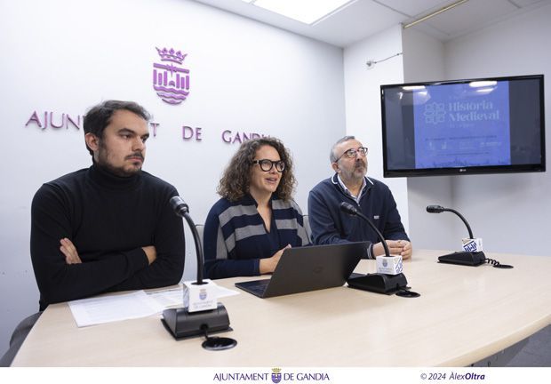 S’ha presentat el primer Aplec d’Història Medieval de la Safor, de la mà de la primera Tinenta d’Alcaldia i regidora de Patrimoni Cultural, Alícia Izquierdo; els organitzadors, Miquel Faus i Frederic Aparisi, tots dos membre del departament d’història medieval de la UV, Miquel Faus, i el president de la Mancomunitat de la Safor, Salvador Femenia,