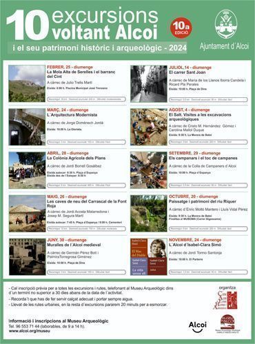 S’ha presentat un nou cicle de ’10 excursions voltant Alcoi’, que aquest any compleix la desena edició. Es tracta d’una iniciativa que arriba de la mà de la regidoria de Patrimoni Històric, a través del Museu Arqueològic Camilo Visedo, i del CAEHA (Centre Alcoià d’Estudis Històrics i Arqueològics).