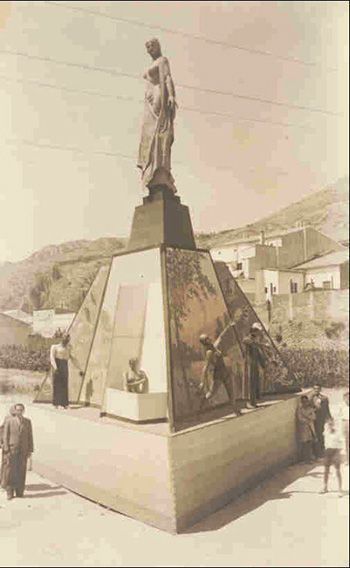 I al barri de Canalejas (el polític ferrolà va ser cuner a Alcoi), al juliol del 35, una estructura de deu metres reivindicava una piscina municipal. La crítica no és evident. Es tracta d’una mena de mausoleu, que no arriba a ser una piràmide, coronat per una figura femenina nua a mode de pinacol. Als quatre costats un seguit de ninots realitzen exercicis o es banyen en una tina, o alguna cosa semblant. Al suplement de El Fallero que correspon al barri la “relació y explicació” apunta que l’obra de Juan Masià reclama la instal·lació “en les umbrienques ‘Uxoles’” per a que el poble no haja de fer més la granota “per malecóns y per bases, que cuan no yan serps de auya yan sangoneres acuátiques…” [sic.].