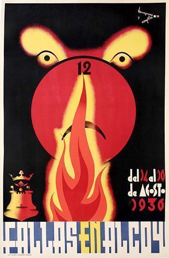 Hi ha, per tant, un evident interés laboral per part dels artistes locals, alguns amb experiència prèvia al sector a la ciutat de València. Existeix, en els seus inicis, una empenta innegable per part del Centre Valencianista d’Alcoi, entitat signatària de les Normes de Castelló del 32. I, caldria no oblidar-ho, les falles permeten un protagonisme a les dones que les Festes de Sant Jordi li neguen. En aquell moment i pràcticament fins a l’actualitat, ningú no ho desmentirà, són un espai eminentment masculí –empraré l’eufemisme per poder continuar vivint tranquil·lament a casa meua.