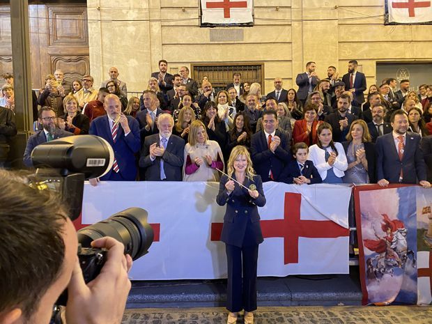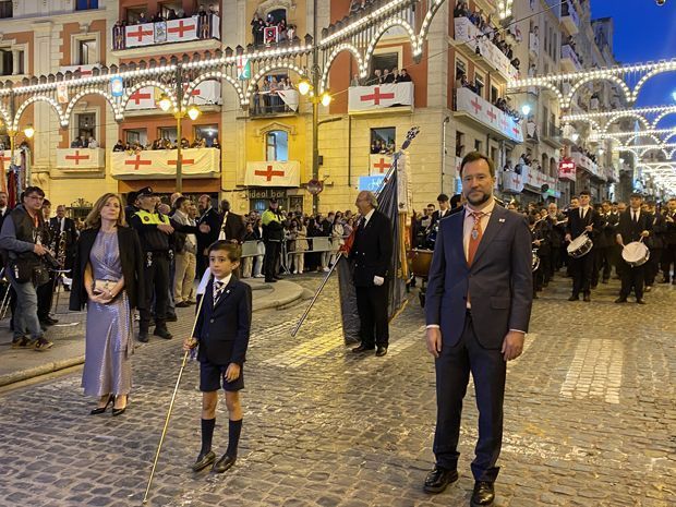 La vesprada ha començat amb la Festa del Pasdoble i amb això la desfilada de bandes des del final de País Valencià i fins a la Plaça d’Espanya, on s’ha interpretat l’Himne sota la direcció de Blanca Carbonell, qui ha rebut la batuta de mans del Sant Jordi, Mauro Abellán. Han estat 24 bandes i 4 grups de dolçainers i tabaleters els participants en la Festa del Pasdoble.