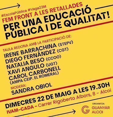 Guanyar Alcoi organitza una taula redona amb motiu de la vaga d’educació del 23 de maig