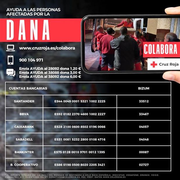 Des de Creu Roja també han volgut oferir la seua ajuda. Segons han informat, en aquests moments s’han pogut repartir materials d’emergència que ja tenen als seus magatzems com mantes, kits d’higiene, roba, o alimentació, però assenyalen que a hores d’ara és molt complicat poder enviar qualsevol classe de material a causa de l’estat de les carreteres. Per aquest motiu, han indicat que és més efectiu en aquests moments és fer donacions econòmiques o en defecte d’allò que se sol·licite, ja que encara no se sap l’envergadura dels danys ni de les necessitats.