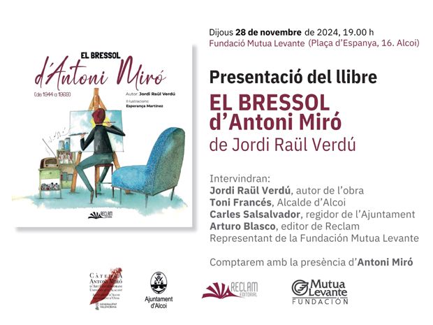 El dijous 28 de novembre l’escriptor alcoià Jordi Raül Verdú presentarà un nou llibre en el qual parla sobre la vida d’Antoni Miró.