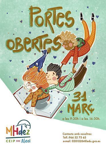 Ja és moment de pensar en el pròxim curs, i moltes famílies ja estan buscant centre educatiu per a les seues filles i fills. Per això, els col·legis estan celebrant les seues jornades de portes obertes. En el cas del CEIP Miguel Hernández, col·legi públic ubicat al barri de la Zona Nord, aquestes se celebraran el dia 31 de març, a les 9:30h i a les 16:30h, encara que des de la direcció del centre han indicat, que poden adaptar-se a les necessitats de les famílies, i concretar cita en altra data.