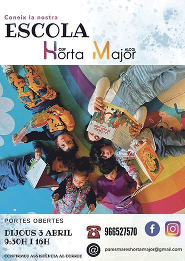 Els centres educatius ja estan pensant en el pròxim curs que començarà al mes de setembre, i donen l’oportunitat a les famílies que han de matricular als seus fills i filles a conéixer les seues instal·lacions i projectes educatius. En el cas del CEIP Horta Major s’han organitzat unes jornades de portes obertes per al dia 3 d’abril en dos torns, a les 9:30h, i a les 16h. Tal com ha indicat David Salinas, director d’aquest col·legi, aquells que visiten el centre de matí: “Podran veure el col·legi en funcionament, i com és el rendiment en una jornada habitual de treball. A la visita de les 16h sols quedaran les xiquetes i xiquets que es queden al menjador, i per tant ja no es podrà veure aquestes rutines”. Així i tot, aquelles famílies que no puguen assistir durant aquest dia, el centre pot adaptar-se i concertar cita en altre moment.