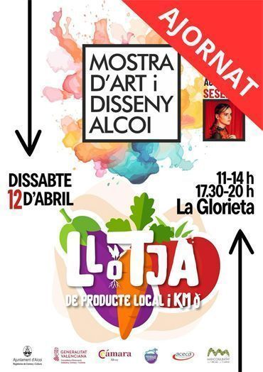 Aquest dissabte 12 d’abril la Glorieta havia d’acollir les noves edicions de la Mostra d’Art i Disseny i la Llotja de Producte Local i Km0, però, segons a anunciat l’Ajuntament d’Alcoi, a causa de les previsions de pluja per a aquest cap de setmana, aquests esdeveniments queden ajornats.