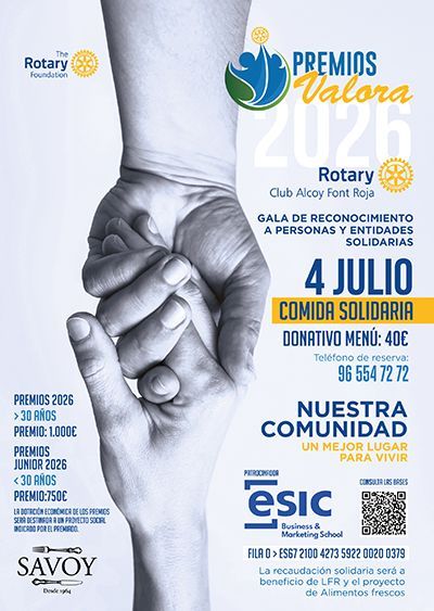 El Rotary Club Alcoi Font Roja i ESIC Business & Marketing School han signat un conveni de col·laboració per a reforçar l’edició 2026 dels Premis Valora, un reconeixement anual que distingix iniciatives vinculades a valors ètics, socials, culturals i empresarials.